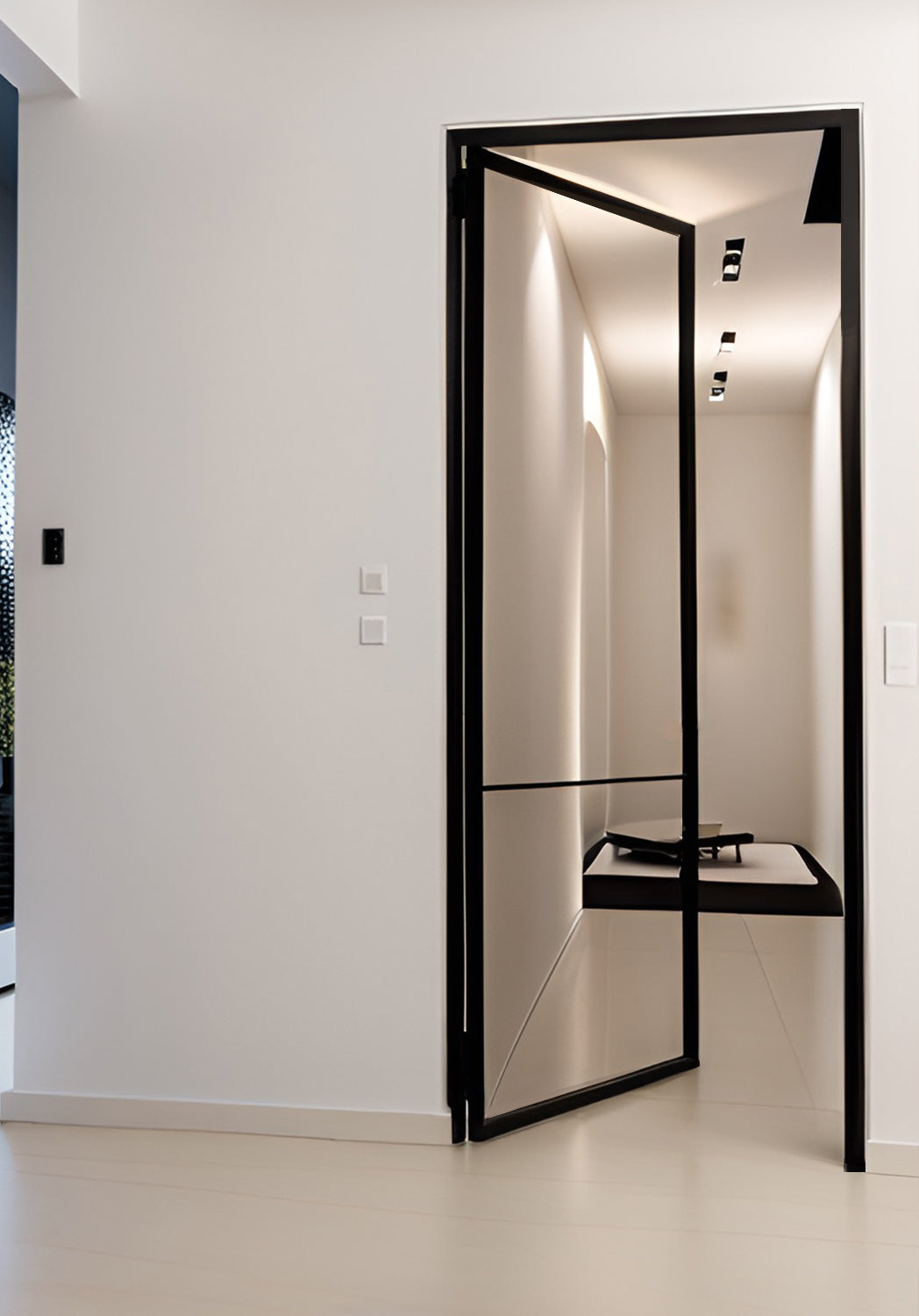 Okvir i krilo izrađeni od čelika (završna obrada je plastifikacija). Profili s presjekom 40mm x 20mm, i unutarnje staklene letvice 15mm x 15mm. Krila staklenih vrata su s žljebovima od 4 mm, a staklo je laminirano sigurnosno stakla od 6 mm, parsol 6mm ili dekorativno staklo 4mm ovisno o izboru.
